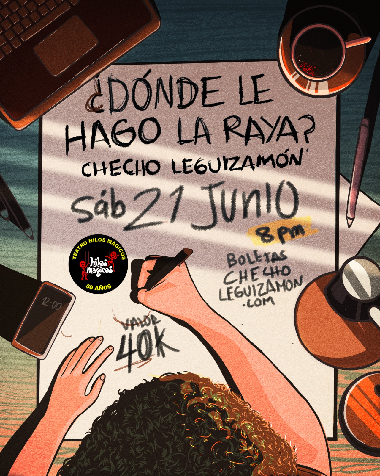 Hace rutinas de comedia? Sí, sí hace. Interactúa con el público? Sí, también. Y me dice que también hay dibujo en vivo? Sí. Y entonces eso es un Stand up comedy? No, fíjese que no. Entonces qué es? Es » Dónde le hago la raya? presentando por Checho Leguizamon.